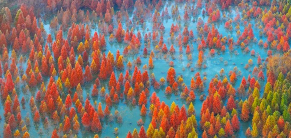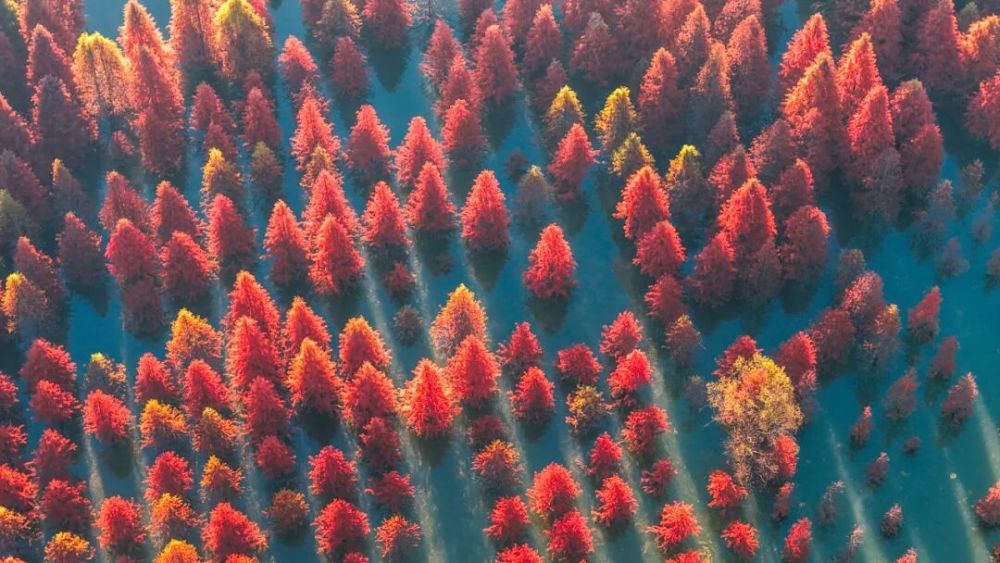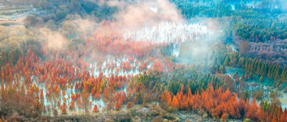 1.6万余株水杉红叶似火