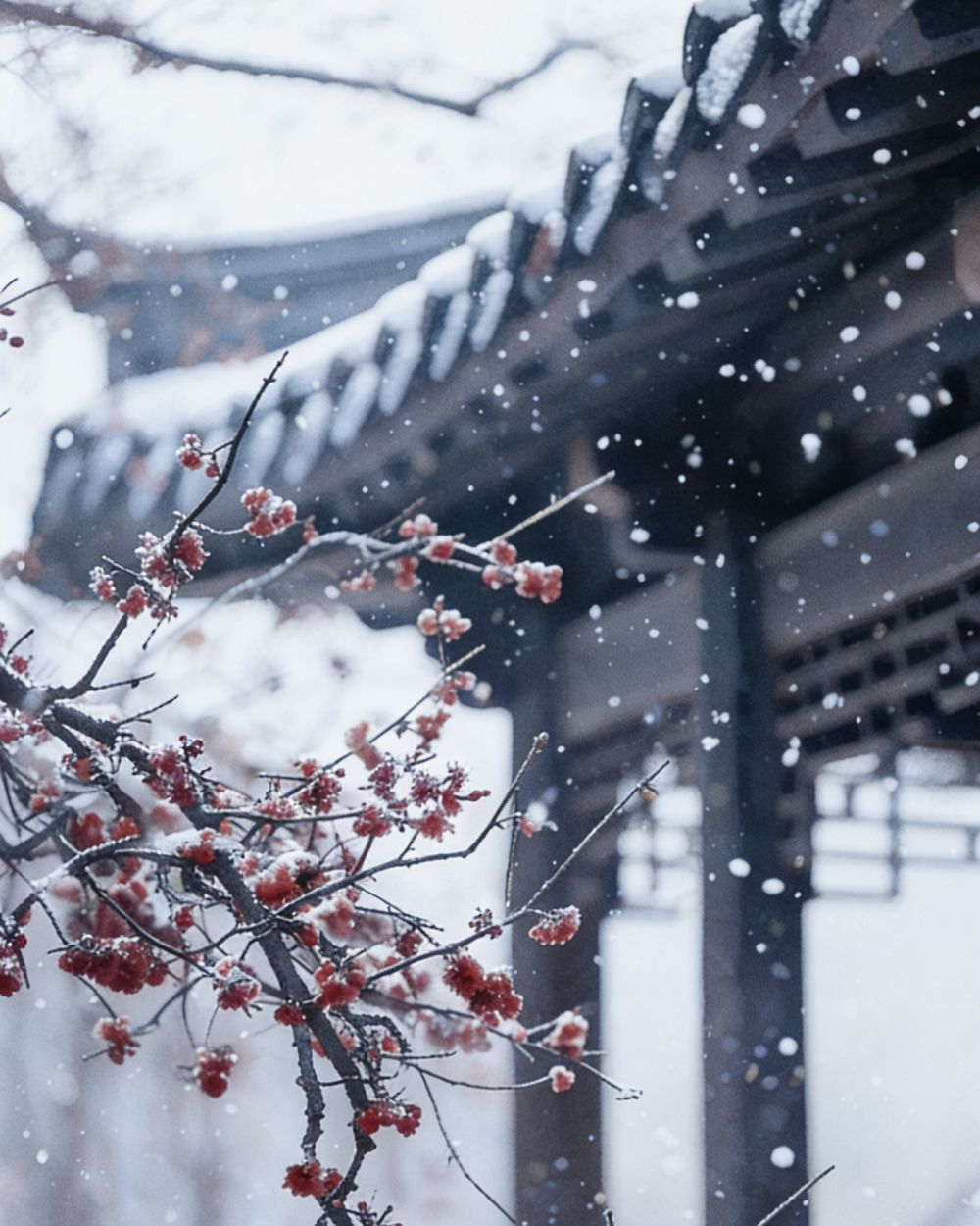 若逢一场晚雪,丽江的冬至更添几分酣畅。雪花簌簌落下,轻轻覆在古城檐角,抚过梅枝花苞,大地瞬间被一片素白笼罩。恍惚间,便懂了“昔去雪如花,今来花似雪”的深长意境——岁岁冬至的雪,落了又融,融了又落,时光流转里,唯有这份雪夜静谧的惬意,与心底的牵挂始终未改。