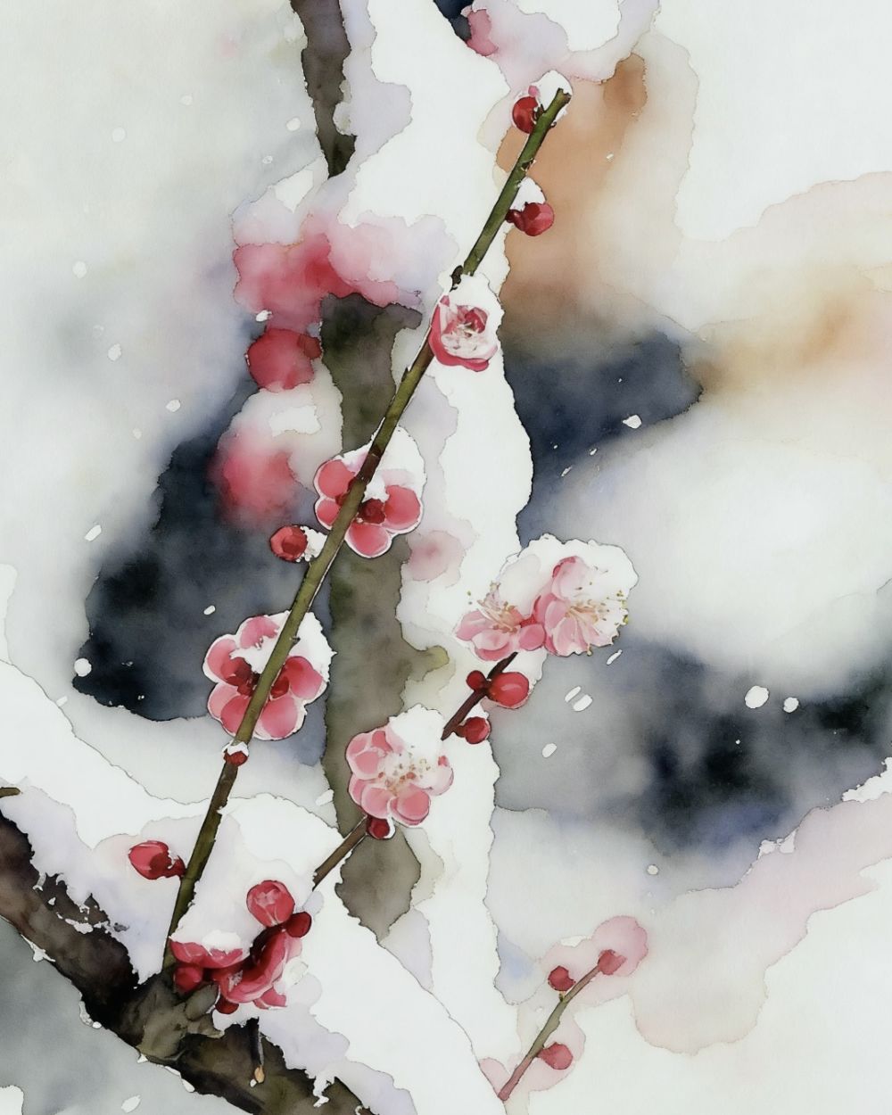梅花初绽。(丽江融媒记者 和慧芳 插画制作)